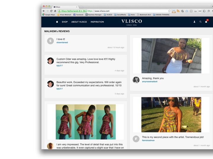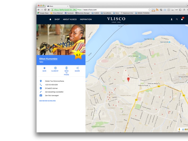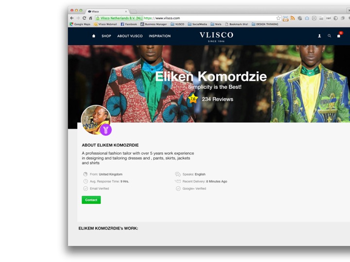 One of the Services to consumers from our fashion ECO system strategy is the Tailor Locator. Vlisco offers an online platform for tailors and designers on which they can publish their work and contact details. By using the Vlisco website and social media the reach of these local designers is improved allowing them to increase their business.